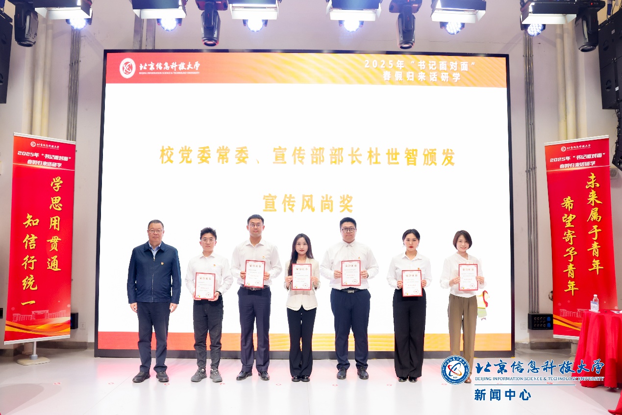校党委常委、宣传部部长杜世智为获得宣传风尚奖的单位颁奖。
