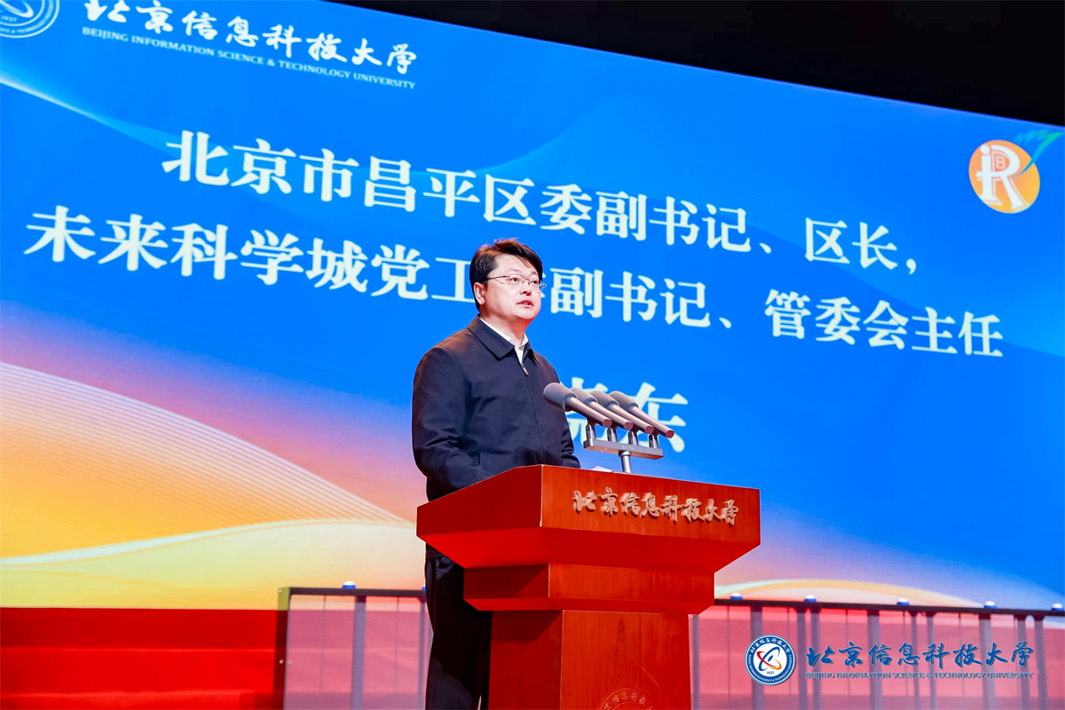 北京市委教育工委副书记、市教委主任李奕,北京市昌平区委副书记、区长、未来科学城党工委副书记、管委会主任刘晓东,昌平区政府副区长马春秀,北京信息科技大学党委书记解江凌,党委副书记、校长郭福出席开幕式。开幕式由校党委常委、副校长王兴芬主持。