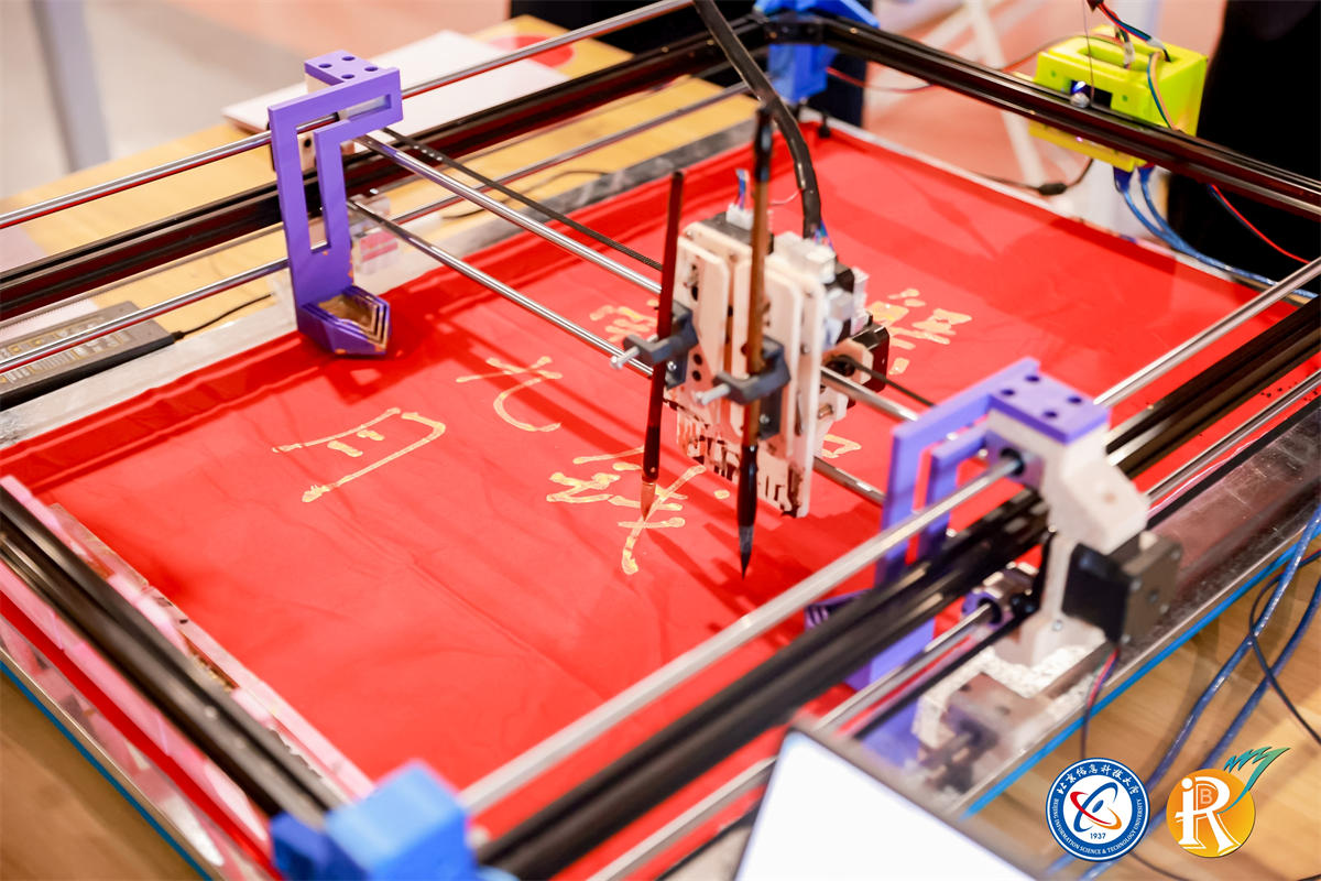 一台配备毛笔的机器人挥毫泼墨,笔法刚劲有力,墨色浓淡相宜,将中国传统书画艺术与现代机器人技术完美结合。