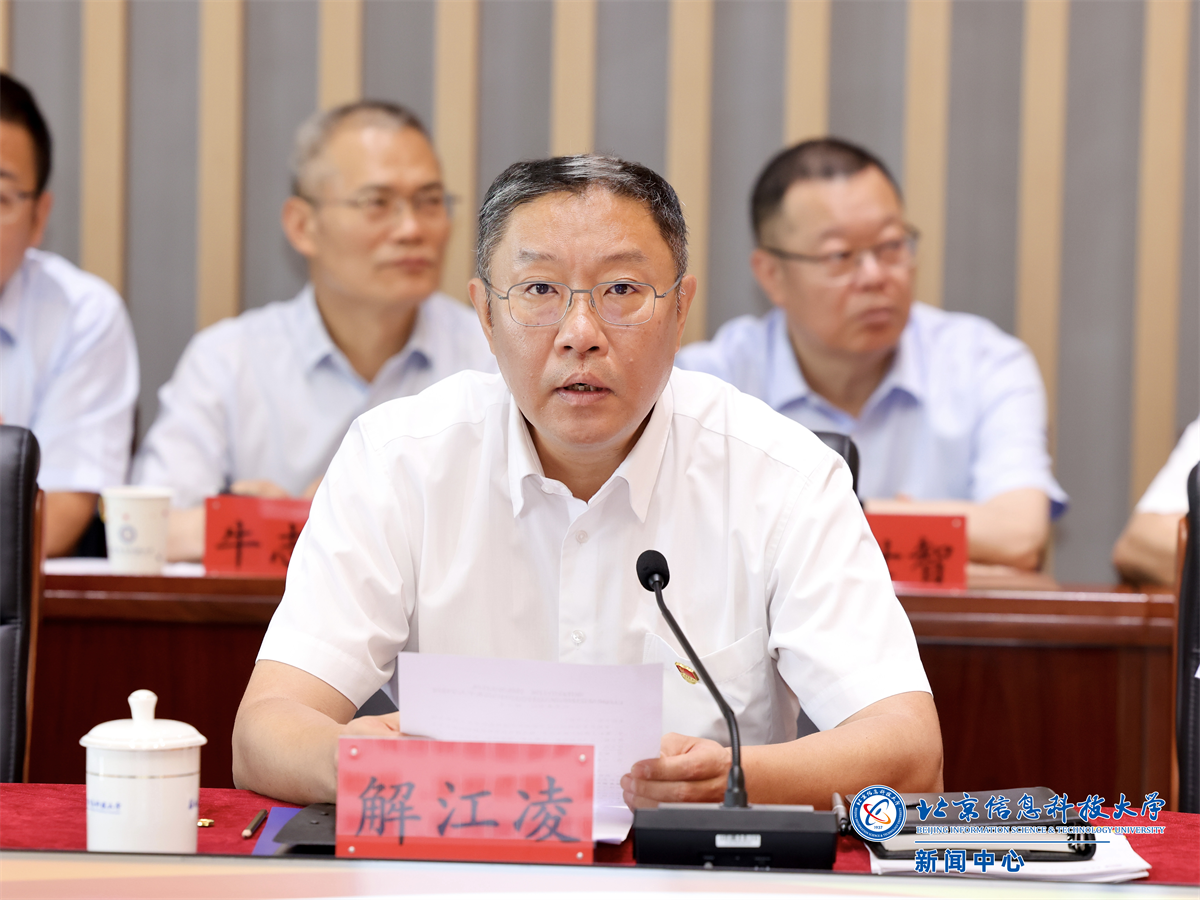 北京信息科技大学党委书记解江凌代表学校党委作《强化政治引领 锤炼务实作风 以高质量党建推动信息特色鲜明的高水平大学建设》专题汇报。解江凌表示,学校党委坚持以习近平新时代中国特色社会主义思想为指导,紧扣立德树人根本任务,锚定建设信息特色鲜明的高水平大学目标,以“外树形象、内聚力量、服务师生、加快发展”为主线,以“勤实信行”作风建设为抓手,充分发挥党建引领作用,推动学校各项事业发展取得显著成效。他从五个方面系统汇报了学校党建和思想政治工作情况:一是把方向、固根本,筑牢办学治校政治根基。坚持党对学校工作的全面领导,把稳办学方向,提升治校能力,筑牢思想根基,不断汇聚改革合力。二是铸思想、育新人,夯实立德树人主阵地。推进“三全育人”综合改革,建好思政关键课程,实施铸魂工程。三是强堡垒、促融合,提升基层组织战斗力。锻造过硬干部队伍,树牢大抓基层鲜明导向,推动党建业务深度融合。四是严作风、肃纪律,压实从严治党责任链。扎实推进“勤实信行”作风建设,深化校内巡察,精准执纪问责。五是谋大局、重贡献,彰显服务首都新担当。高标准落实“疏整促”任务,优化校区功能布局,深度对接首都“四个中心”建设,主动融入京津冀教育协同发展。解江凌表示,学校将以此次评选考察为新的起点,进一步深化“勤实信行”作风建设,深刻把握教育铸魂育人的政治本色、以生为本的价值追求、服务战略的使命担当,以高质量党建引领事业高质量发展,奋力谱写建设信息特色鲜明的高水平大学新篇章!