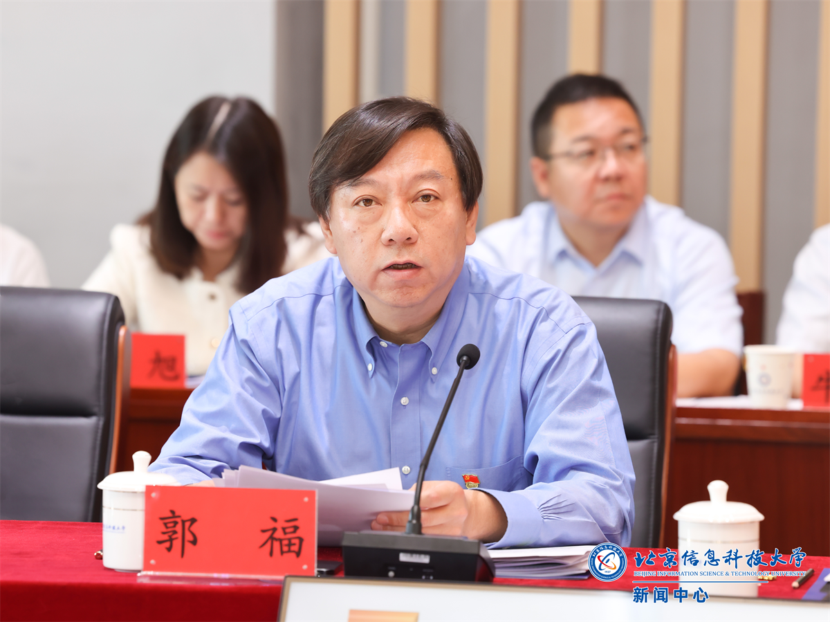 校党委副书记、校长郭福以《党建引领把方向 融合发展谱新篇》为题作补充汇报。他从“党建引领成效显著,办学能级实现新跨越”“党建业务深度融合,核心竞争力明显增强”和“党建赋能强特色,发展动能持续提升”三个方面,重点介绍了学校党委坚持党建与业务同谋划、同部署、同落实、同考核,构建“党建业务一盘棋”格局,推动实现党建工作与事业发展深融合、双促进所取得的成效。郭福表示,学校将立足新起点,以更高站位、更强担当、更实举措,凝心聚力、接续奋斗,为建设特色鲜明的高水平大学、服务教育强国战略和首都经济社会发展作出信息科大贡献。