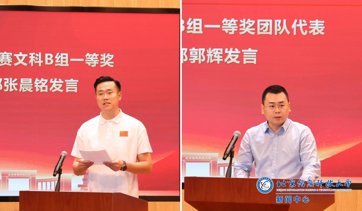 会上,青教赛一等奖获得者、体育部教师张晨铭,青管赛一等奖团队代表、宣传部干部郭辉,先后分享了各自从校内选拔到市赛夺魁的参赛历程与心得体会。