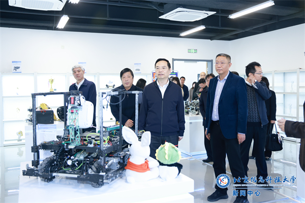 王燕庆一行还参观了学校科研成果展、国家级创新创业实践基地和图书馆。科技处处长曹林介绍了学校重要科研成果的性能功用、研发特色、社会效益等情况。教务处副处长郑小博介绍了学校“双创”育人成效、学生自主科技创新成果、学科竞赛参与获奖等情况。图书馆馆长介绍了图书馆中所蕴含的中国传统哲学思想、现代化设计理念、智慧化运行、馆藏历史档案和文献、书香校园建设等情况。