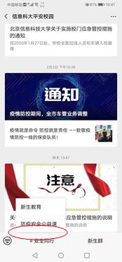 第一步:扫描下面二维码,关注学校“信息科大平安校园”微信公众号;