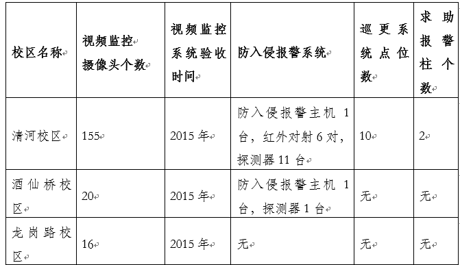 三、本项目涉及校区安防系统主要情况表
