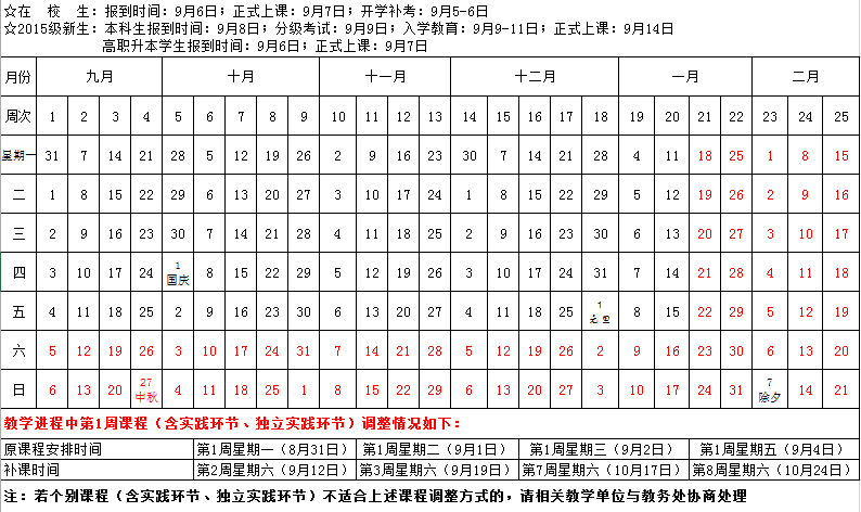 2015-2016(一)学期全日制本科生教学日历