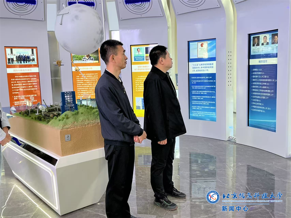 座谈会前,唐超一行实地考察了沙河校区沙盘、图书馆、校史馆以及科研成果展厅等场所。