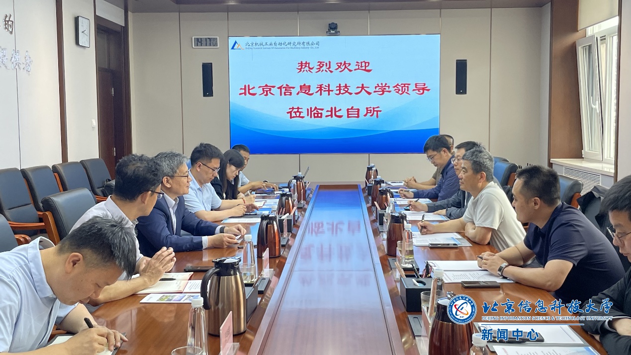 5月23日下午,张健带队到北京机械工业自动化研究所有限公司(以下简称“北自所”)调研交流,旨在加强校所合作,促进双方在专业建设、人才培养、科研创新等多领域的深度融合。北自所党委书记、董事长王振林热情的接待了张健一行。