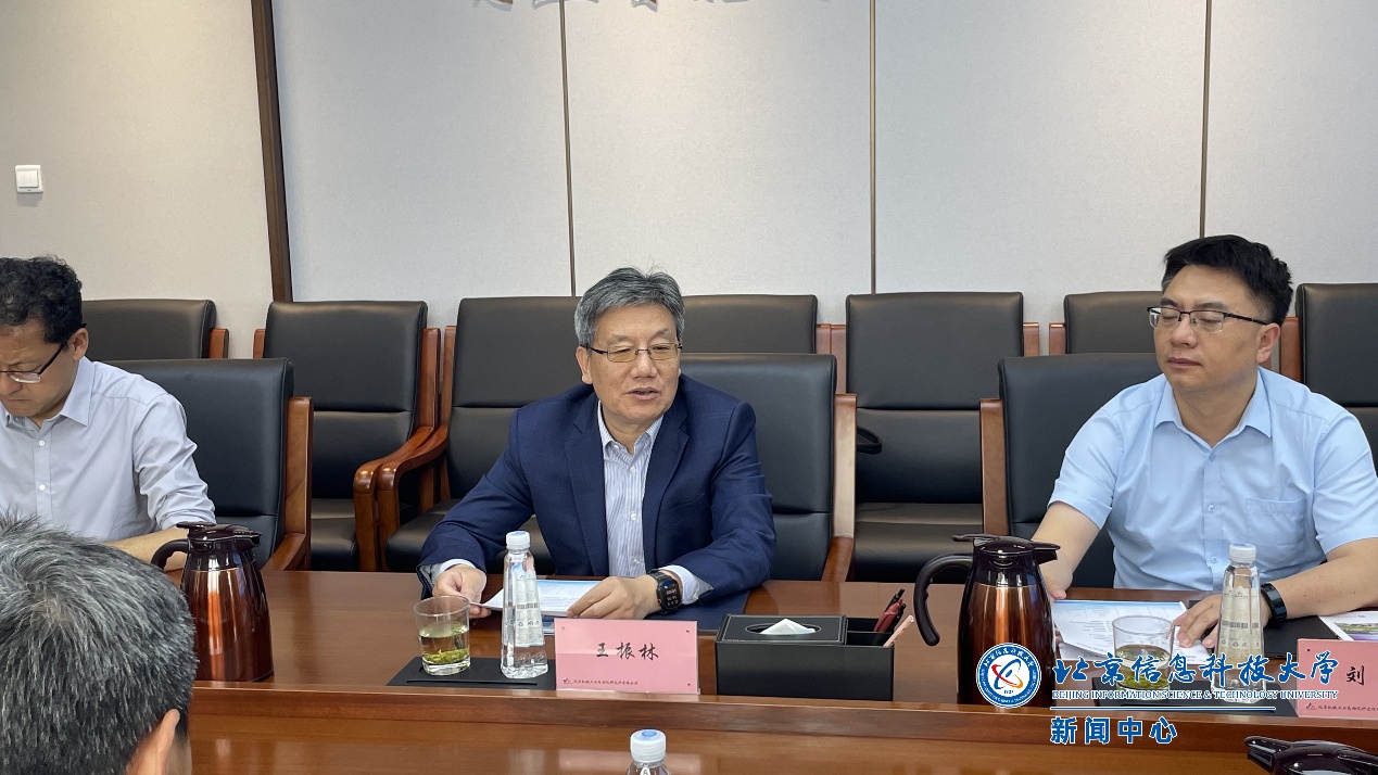 王振林对张健一行到访交流表示热烈欢迎,并简要回顾了北自所的发展历程,介绍了其业务领域及取得的显著成绩。王振林指出,北自所始终秉持着成为国内一流、国际知名的行业智能制造全面解决方案提供者目标,全力推动我国装备制造业在自动化、信息化、智能化、集成化技术方面的创新与发展。王振林表示,双方历史渊源深厚,研究领域契合度高,希望双方能加强沟通交流,推动合作落地走实,通过北自所在行业智能制造方面的突出优势,助力学校在专业建设、人才培养、科研攻关方面的长足发展,实现校企双赢。