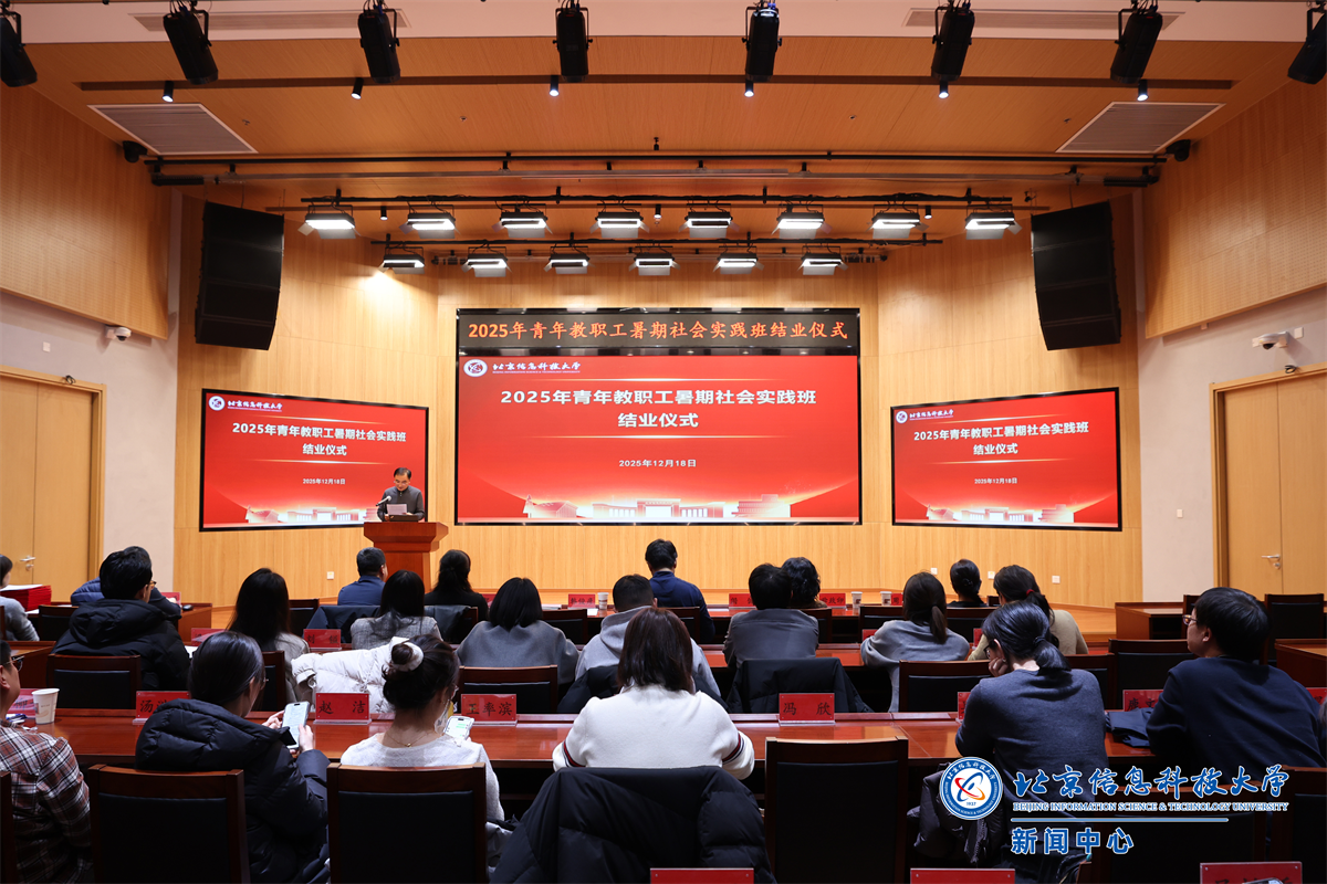 仪式在专题纪录片《步履所至 心之所向——北京信息科技大学2025年青年教职工暑期社会实践班纪实》的播放中拉开序幕,回顾了从盛夏启程到深秋结业的难忘历程。