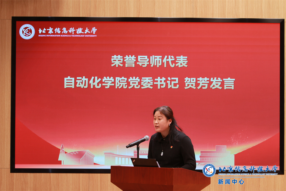 荣誉导师代表、自动化学院(人工智能学院)党委书记贺芳在发言中高度评价了学员们的成长。她表示,此次实践班实现了理论结合时间、历史对话现实、个人融合集体。她寄语全体学员将收获转化为育人智慧、科研动力与服务本领,在岗位上持续发光发热。