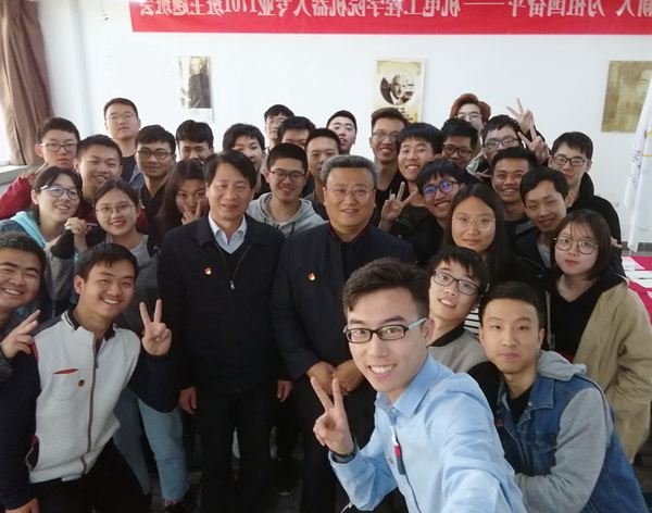 会后,全班同学与王传亮、陈刚自拍合影留念。