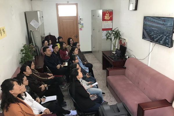 广大干部师生在会议室、教室、实验室、教研室等场所认真组织收听收看。