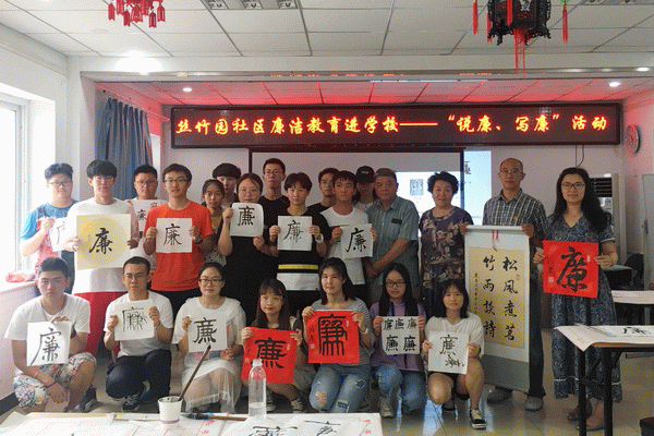廉政文化在中华文明史上源远流长,《广雅》曰:“廉,清也。”6月21日,通信学院学生党员、入党积极分子来到丝竹园社区活动室,与居民共同举办“党风廉政进校园”之说“廉”写“廉”。