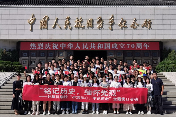 9月18日下午,计算机学院组织百余名学生党员、入党积极分子赴中国人民抗日战争纪念馆开展“不忘初心,牢记使命”主题党日活动。活动旨在通过重温历史,进一步加强学生党员爱国主义教育,树立新时代青年学生的使命担当。学院党委副书记邵飞、党建辅导员卫晨星带队参加活动。