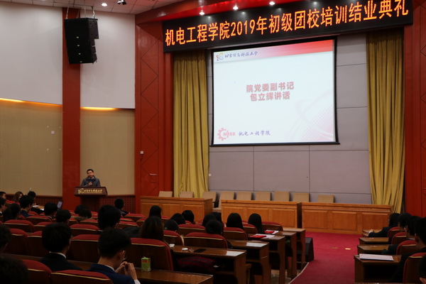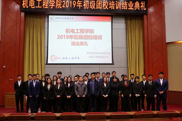 12月11日晚上,机电工程学院2019年初级团校结业典礼在小营校区报告厅举行,机电工程学院党委副书记包立辉、院团委书记甘长来参加了本次结业典礼。