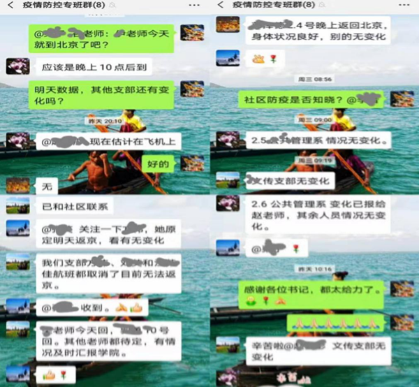 1月23日下午,公共管理与传媒学院党委迅速行动,第一时间在师生中开展各类情况排查工作。安排专人,做好教工、学生两个群体的信息报送工作。出台了《公共管理与传媒学院关于防控新型冠状病毒感染的肺炎疫情工作实施方案》,成立公管传媒学院疫情防控工作领导小组,细化学院疫情防控工作应急预案,提出工作要求,明确责任分工。建立“公管传媒数据上报群”“疫情防控专班群”“各支部小组微信群”,“各班级微信群”时刻把学生和老师的生命安全和身体健康放在首位,全面加强防控工作,坚定必胜信心、保持战斗状态,坚决打赢疫情防控阻击战。