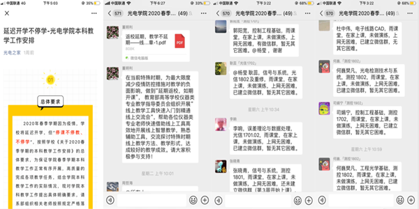 为确保春季学期教学活动如期、有序开展,学院针对理论教学、课程实验、毕业设计、创新实践等各个环节制定了工作安排,明确了工作要求。假期中,全院教师积极为52门本科生课程、7门研究生课程的网络开课进行准备。建立2020春季学期授课群,参加在线教育专题培训,进行线上教学交流讨论,开展网络教学重新备课。以授课效果为导向,学院组织任课教师提前开展授课演练,对网络授课过程中存在的问题及时沟通并有效解决,确保课程质量。以学生为中心,科学制定教学方案的同时,切实解决学生居家学习存在的困难。任课老师帮助学生扫描电子版教材,摸排每一名学生家庭上网设备及条件。对于有困难的学生及时掌握,设法帮助。从教师到学生,确保网络教学各个环节的顺畅运行。