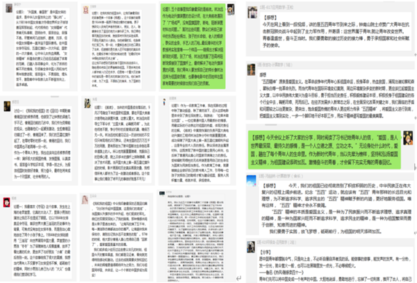 有的班级结合“五四精神 传承有我”素材征集活动,在线分享了班级同学自己创作的作品,以作品抒发爱国之情、以作品增强责任意识。
