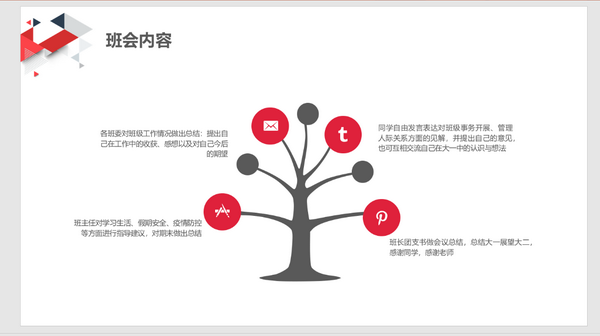 在主题班会中,各班班主任老师和班委成员围绕一年来班级工作情况做出总结,老师们从学习生活、假期安全、疫情防控等方面提出指导建议,同学们积极参与讨论并进行自我总结。