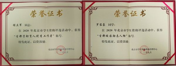 北京信息科技大学荣获2020年“首都学生资助典型经验单位”;学校党委学生工作部副部长程立军荣获2020年“首都资助育人优秀工作者”称号;公共管理与传媒学院学生罗容豪荣获2020年“首都校园励志人物”称号。
