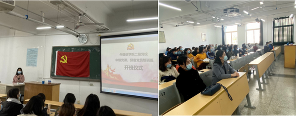 外国语学院本学期中级党课、预备党员培训班同时开班,两期培训班均采取集中培训、教育实践活动、学员自学与讨论等多种形式开展。余志超对同学提出两点要求:一是严格遵守纪律,主动学习党的理论知识,行动上积极向党组织靠拢;二是坚持理论联系实际,将学院二级党校理论培训、教育实践学时积分要求与党员朋辈引领计划、宿舍责任区等活动结合起来,提高学习、实践效果。