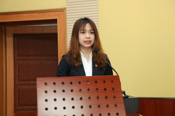第一期培训班学员代表、经济管理学院翟迎兵和第二期培训班学员代表、机电工程学院田爽分别发言。他们代表全体学员感谢学校党委的精心组织安排,表示在今后的学习中,将严格遵守各项规章制度,积极参加学习及实践活动,努力成为一名真正的青年马克思主义学习者和践行者。