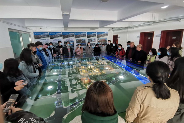 外国语学院党总支一行首先来到新校区建设办公室,观看了新校区规划沙盘,了解了新校区的整体布局和详细规划,新校区李易远老师耐心解答了师生对具体工程进度、新校区配套设施、周边交通等疑问。