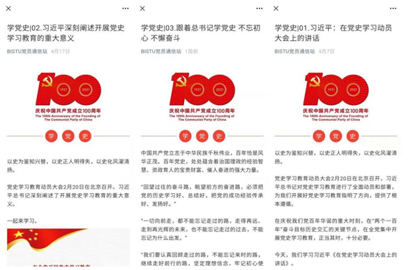 学史增信,我讲党的故事,以故事增强信心。开展“传承红色通信精神 勇担时代责任使命”讲述百个红色通信故事系列学习活动,学院党员学生通过结合学科专业特点,梳理学习中国共产党成立后红色通信发展史,整理讲述红色通信故事,在学院党员教育平台“党员通信站”和学院平台“通信拾光”两个公众号同步推送,传承红色通信精神。同时还结合习近平总书记学习党史重要论述,同步开展学党史知识推送。