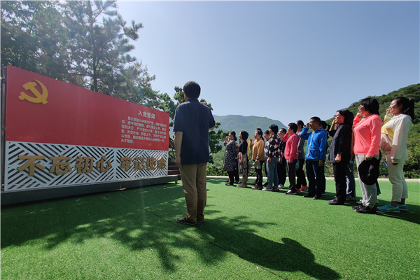 在“革命英雄浮雕”广场前,全体党员面向党旗,庄严宣誓,牢记承诺,坚守入党初心。