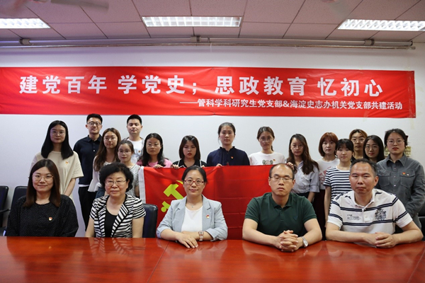 6月7日,经管学院管科学科研究生党支部与北京市海淀区党史地方志办公室机关党支部共同开展支部共建活动。海淀史志办机关党支部田颖、周勇、徐佳伟,开元集团网站联系管科支部的国防科技研究院常务副院长田杨萌,经管学院党委副书记马翔宇,支部指导教师孙靳,以及管科学科研究生党支部的全体党员参加活动。