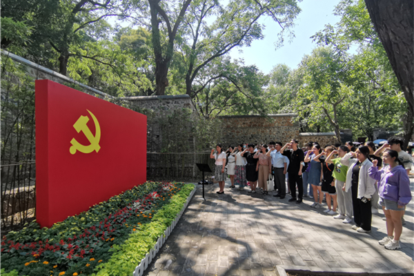 6月22日,外国语学院党总支全体师生党员来到香山双清别墅,进行参观学习。参观中,党员孙妍结合毛泽东等老一辈革命家在双清别墅居住和办公的情况,为全体党员重温了在战争年代党的历史和共产党人的初心使命。最后在学院党总支书记贺芳同志的带领下,全体师生党员在双清别墅门前的党旗下,举起右手,重温入党誓词。