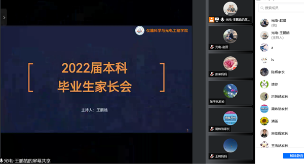 为加强家校沟通交流,共同做好学院2022届本科毕业生就业创业工作,3月31日晚,光电学院依托腾讯会议召开2022届本科毕业生家长会。会议由学院就业辅导员王鹏皓主持,学院学生工作负责人赵贤及毕业班学生家长参会。