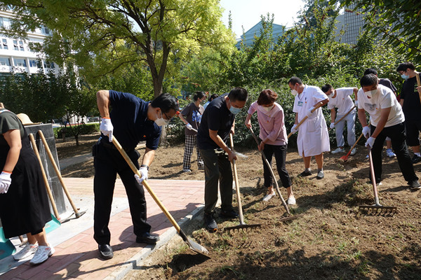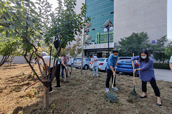 9月16日下午,后勤党总支组织党员30余人,在小营校区实验楼前开展了“松土整地 扮靓校园”绿色学校创建主题党日活动。