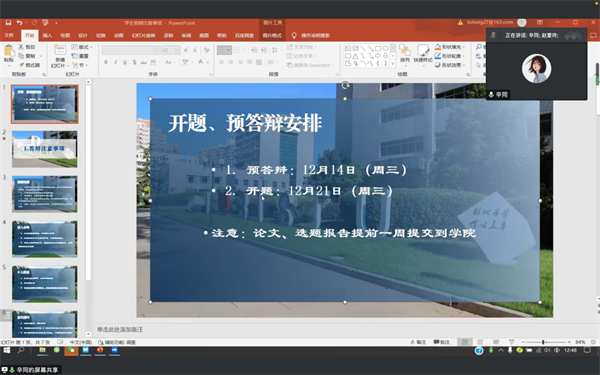 赵爱玲表示,同学们要认清当前疫情防控的严峻形势和当前采取的一系列防疫政策,响应学校号召,严格落实落细各项防疫规定。学院已建立完整的服务保障体系,同学之间要相互提醒、互为保障。在做好防疫工作的同时,要准备好毕业论文开题和预答辩材料,熟悉论文答辩流程,多与导师沟通,做到有序推进。赵爱玲还就部分学生有关疫情防控要求和预答辩、开题安排的若干提问进行了解答。(供稿/图片:马院研2201班 赵一阳 编辑:田驰正 审核:杨静)