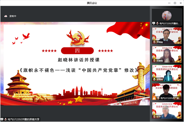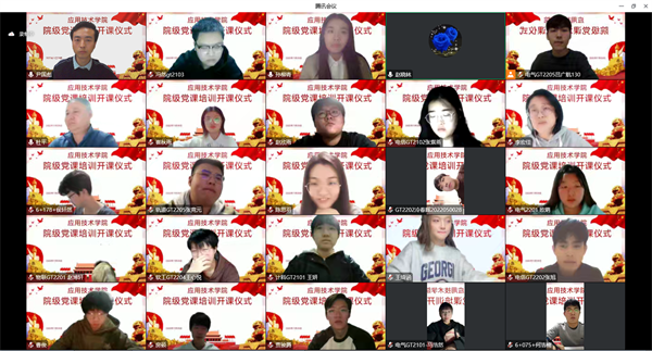 11月29日,应用技术学院通过线上形式举行了“永远跟党走 奋进新征程”2022年院级党课培训开课仪式。应用技术学院直属党支部书记赵晓林出席并进行授课,组织员孙柳青、党建辅导员尹国彪及50余名入党积极分子参加了仪式。开课仪式由应用技术学院直属党支部副书记杜平主持。
