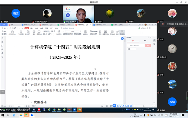 学院院长李宁介绍了学校和学院“十四五”事业发展规划的整体情况,对学院“十四五”事业发展规划进行了年度目标分解,结合计算机学科冲博,详细分析了当前学院教学科研工作中需要加强和改进的问题,号召学院教师围绕冲博目标,主动作为,形成教学科研合力,为落实学院“十四五”事业发展规划贡献力量。