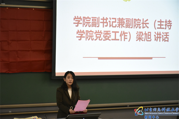 会议在庄严的国歌中隆重开幕。梁旭代表学院党委向大会表示热烈祝贺,向参会的各位代表表示最诚挚的问候,并向青年团员们提出希望。她嘱托新时代青年要紧扣时代脉搏,深入学习党的二十大精神,进一步增强思想政治素质,积极投身共青团工作,注重实践育人和志愿服务工作,充分发挥好党的助手和后备军的作用,将自身发展融入学校和国家发展大格局,从而在建设中国式现代化的新征程中贡献青年智慧和力量。