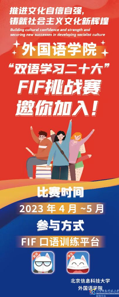 4月25日,外国语学院“双语学习二十大”活动拉开帷幕。学院将学习党的二十大精神与学生专业学习相结合,依托英语FIF口语训练平台,将平台中“课程思政类”板块内的“二十大报告精选”作为载体,选取“二十大原文梳理”共计12个单元的内容,由专业课教师带领学院2020、2021、2022级全体学生进行学习。此次“双语学习二十大”活动将持续两周。