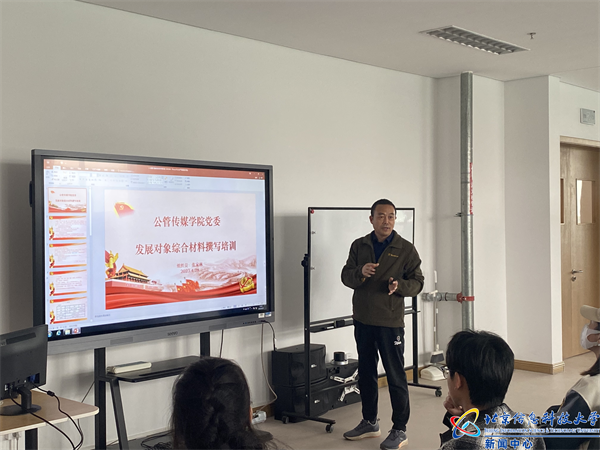张家林为发展对象开展简单培训。首先对本次校级党课安排的现场讲授、在线学习、集中观影、课后讨论、结业考试五个模块,进行逐一讲解,为大家划重点难点。其次对发展对象如何写好综合材料进行培训。张家林勉励大家,要当起而行之的行者,攻坚克难的奋斗者,做疾风劲草,烈火真金,将实干作为自己真正的追求,早日成为一名合格的共产党员。