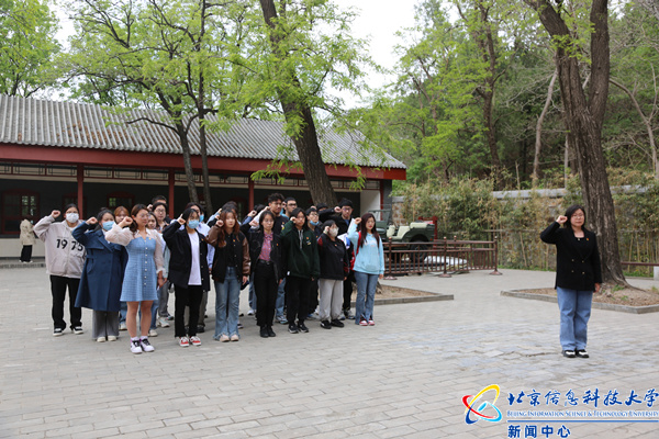 双清别墅于香山公园南麓区域,是毛泽东等中共中央领导“进京赶考之路”的重要点位,新中国诞生初期中共中央在此吹响了解放全中国的伟大号角,孕育了“将革命进行到底”的香山革命精神。理学院师生沿着红色印记重温峥嵘岁月,在谢司老师的领誓下,学生预备党员们在党旗前进行集中入党宣誓。随后师生跟随讲解员一同现场参观学习,同学们在参观中重温中国革命走向胜利的历程,一起体悟党的自我革命精神,回忆中国共产党跳出历史周期律的执着奋斗。