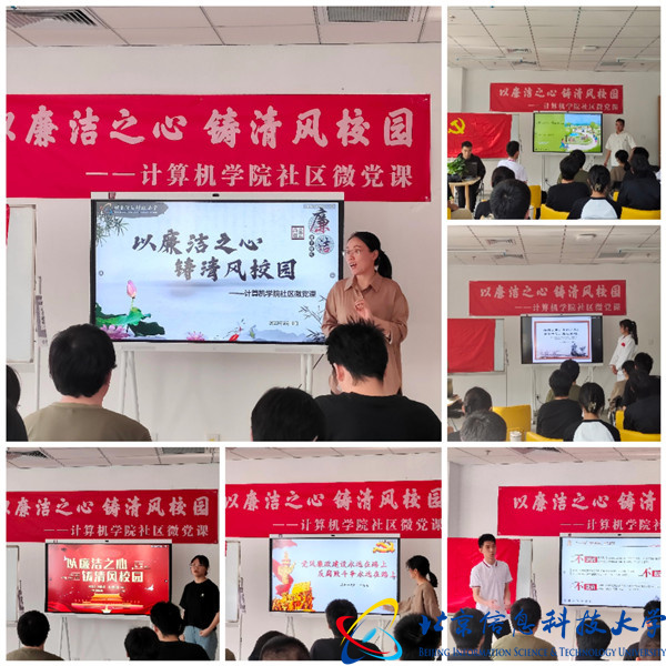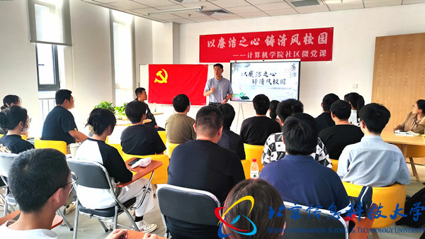为深入开展学习贯彻习近平新时代中国特色社会主义思想主题教育,创新党建方式,努力打造“沉浸式”育人新阵地,深入推进“一站式”学生社区高质量建设,计算机学院开展系列微党课“进社区”活动,并于5月10日在昌平校区学生发展中心成功举办以“以廉洁之心,铸清风校园”为主题的首期“一站式”学生社区微党课。学院党委副书记邵飞、党建辅导员王亚娜、学生党支部书记以及学生党员等32人参加本次活动。