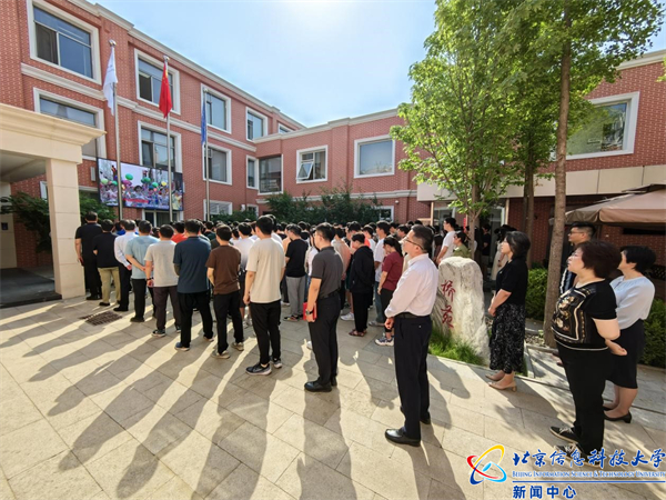 首先,王兴芬一行参加了酒仙桥校区每周一例行开展的升旗仪式。光电学院师生代表在国旗下发表了庄严的演讲,抒发了青年科研工作者的科研报国之志。随后全体人员合唱歌曲《歌唱祖国》和《我们走在大路上》。
