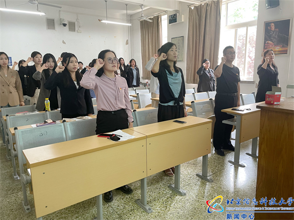 党支部书记卢美含带领全体党员重温入党誓词,党员们在铮铮誓言中牢记入党初心,坚定理想信念,启航新征程,建功新时代。