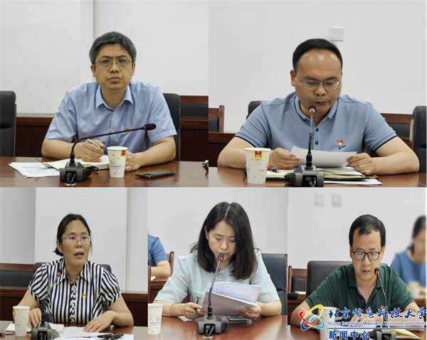 人事处处长兼党委教师工作部部长谢新伟、信息管理学院党委书记谌兵、马克思主义学院党总支书记郭银辉、计算机学院党委副书记兼副院长梁旭、经济管理学院党委副书记张良志分别就本单位主题教育工作开展情况、取得实效及下一步工作安排作了交流汇报。
