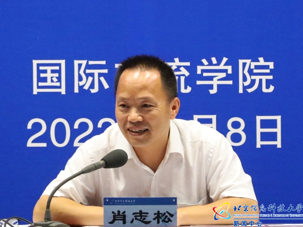 肖志松代表学校向来自17个国家的国际新生表示热烈欢迎,祝贺他们加入北京信息科技大学这个国际化的大家庭。他向新生们介绍了学校的悠久历史及国际交流情况,并寄语新生:尽快融入校园,积极参与校园内外的各项活动,充分展示自己的才华;多向世界分享在中国学习和生活的经历,向世界展示真实、立体的中国,当文化交流的使者。