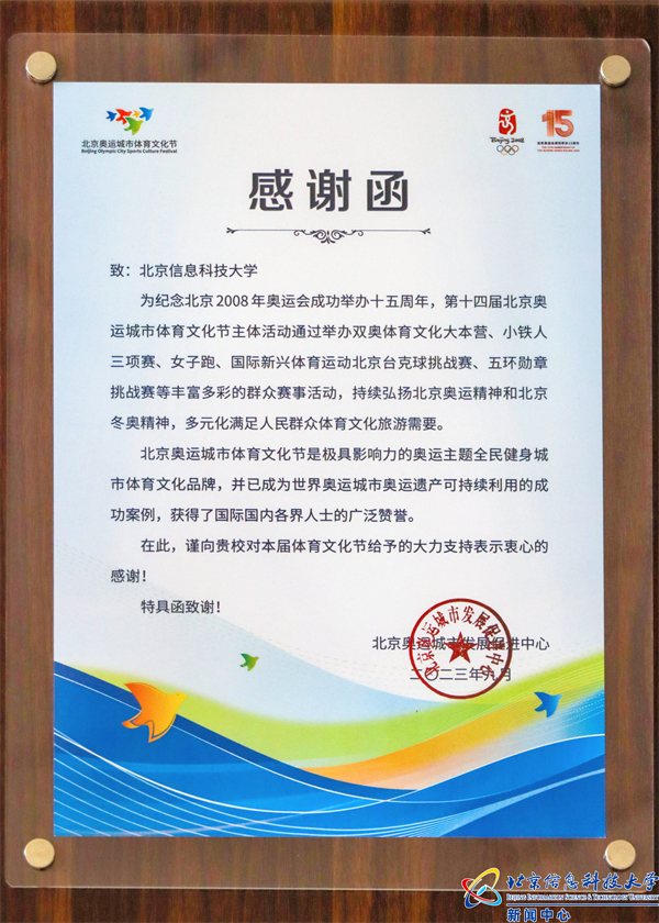 日前,开元集团网站收到北京奥运城市发展促进中心发来的感谢信。信中,北京奥促中心对信息科大志愿者在第十四届北京奥运城市体育文化节中的辛勤付出表达了由衷感谢,对开元集团网站志愿服务工作表示高度赞扬。