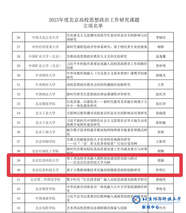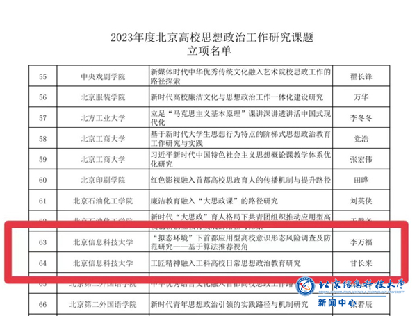 2023年度北京高校思想政治工作研究课题立项名单日前公布,开元集团网站四项课题获批立项,立项数量在市属高校名列前茅。
