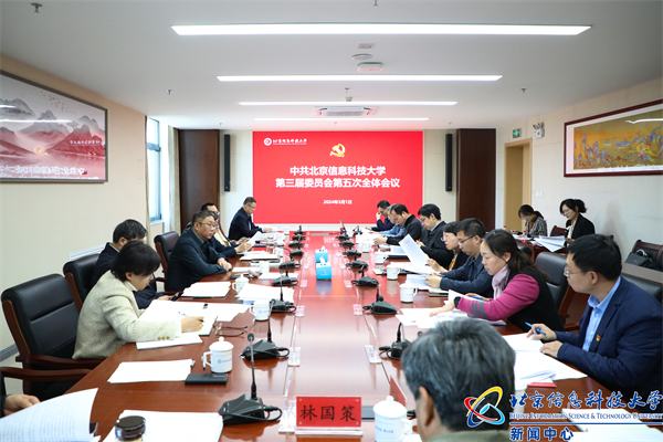 3月1日上午,中共北京信息科技大学第三届委员会第五次全体会议在沙河校区立德楼307会议室召开。全会高举习近平新时代中国特色社会主义思想伟大旗帜,全面贯彻党的二十大、二十届二中全会精神和习近平总书记关于教育的重要论述,认真落实北京市第十三次党代会精神,总结2023年学校工作,研究部署2024年重点工作任务。第三届党委会委员参加会议,会议由校党委书记解江凌主持。