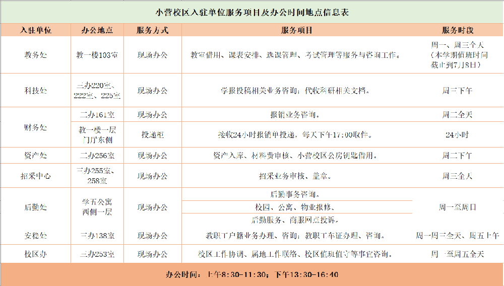 “一站式”教师服务大厅入驻单位服务项目及窗口办公时间信息表(沙河校区)